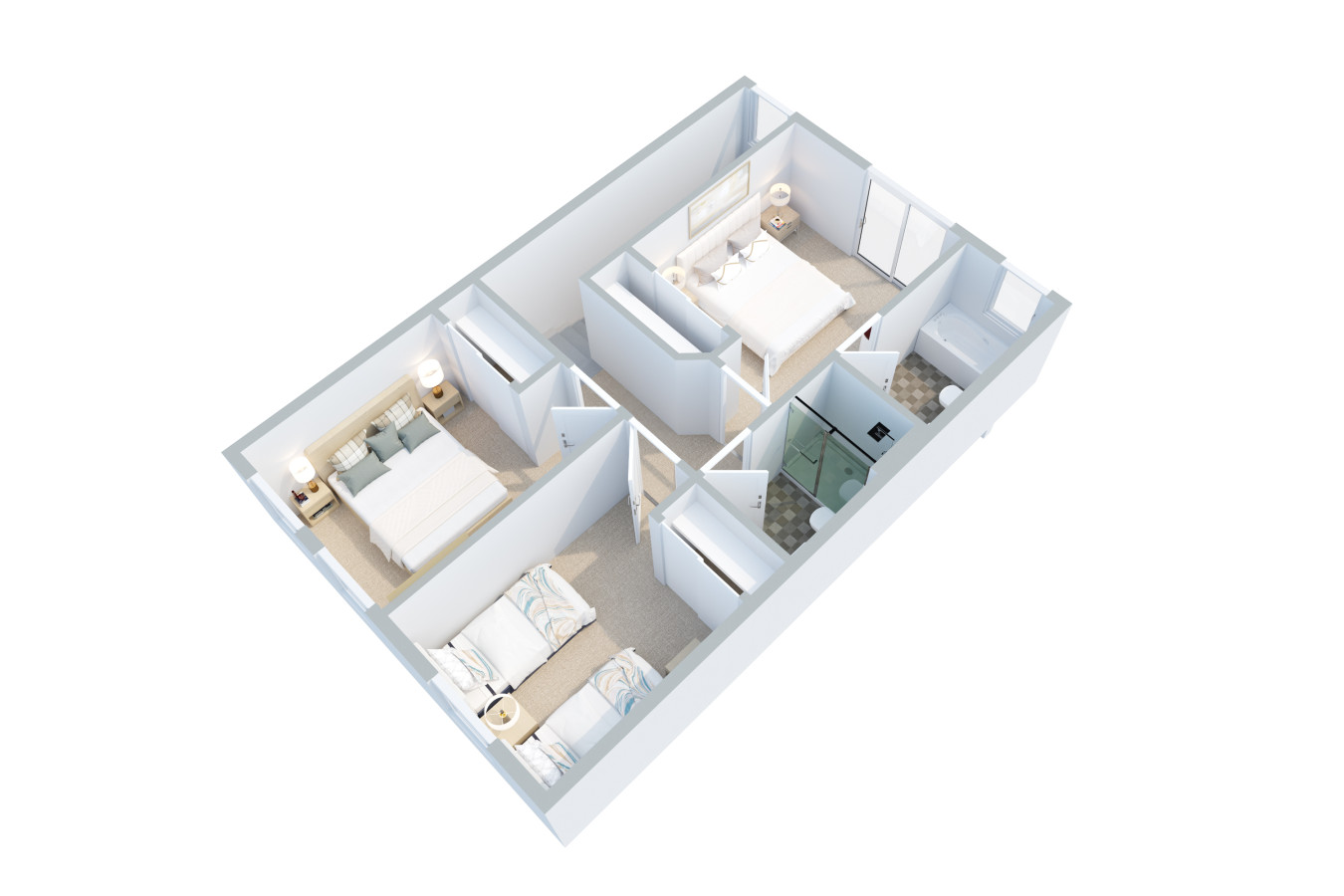 Two feature plush king beds with ensuite bathrooms, giving you the comfort and privacy you deserve. The third bedroom with twin beds is perfect for kids or friends, making Casa Luz a versatile choice for all kinds of groups. With smart TVs in every room, everyone can unwind with their favorite shows before drifting off to sleep.