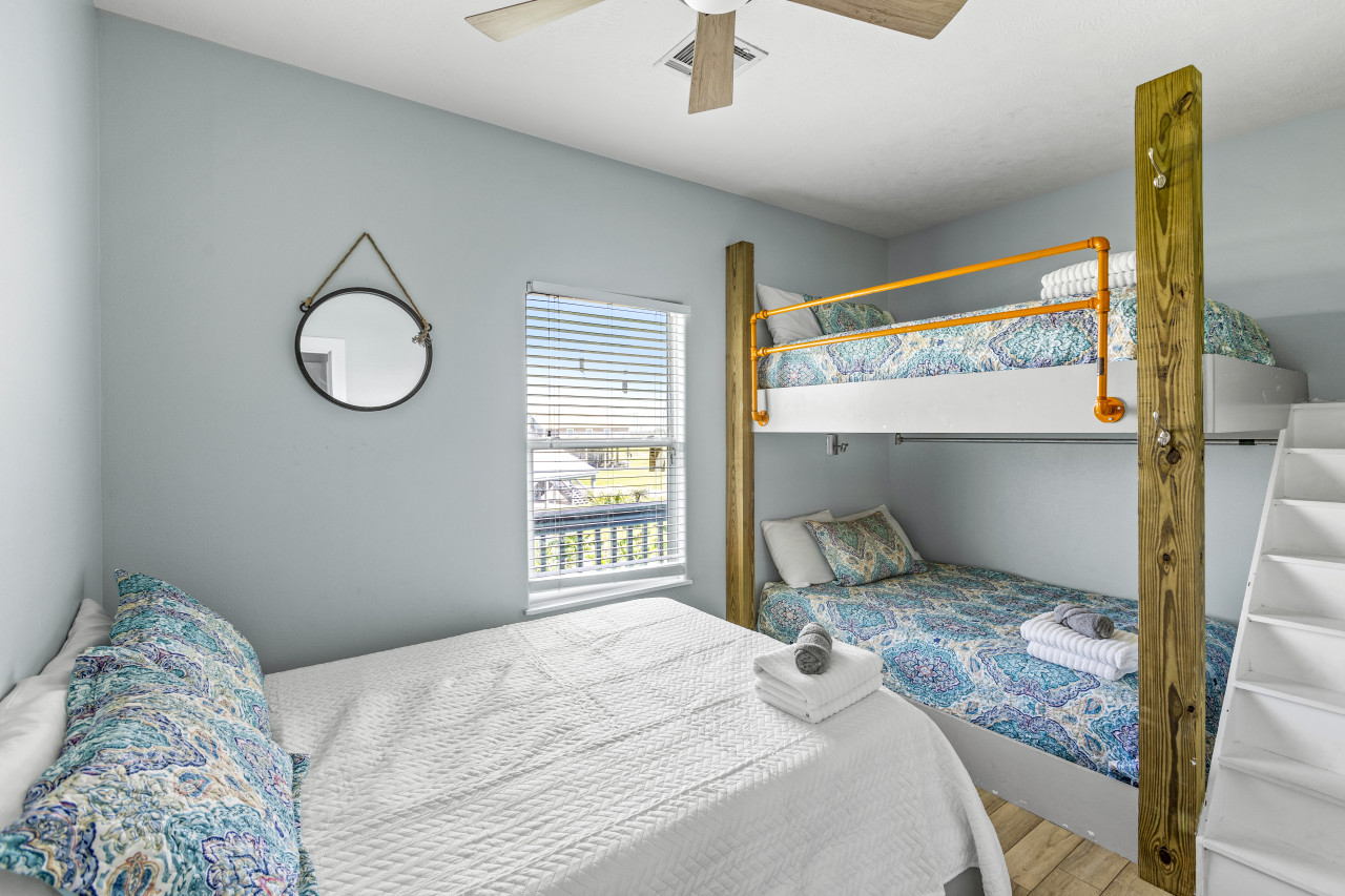 Nestled just steps away from the sun-drenched shores and rhythmic waves of Crystal Beach, this charming getaway is tailor-made for families seeking a rejuvenating coastal escape. With three cozy bedrooms, including built-in bunks and a sumptuous master suite, this inviting abode comfortably accommodates up to 10 guests, ensuring ample space for the whole family to unwind and create cherished memories together.
