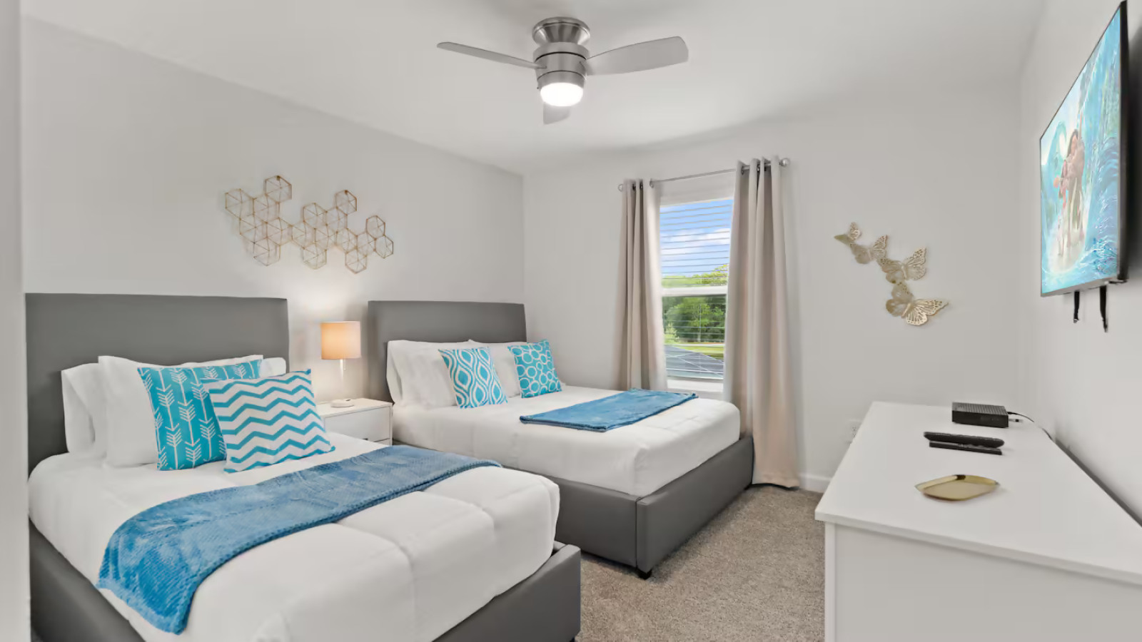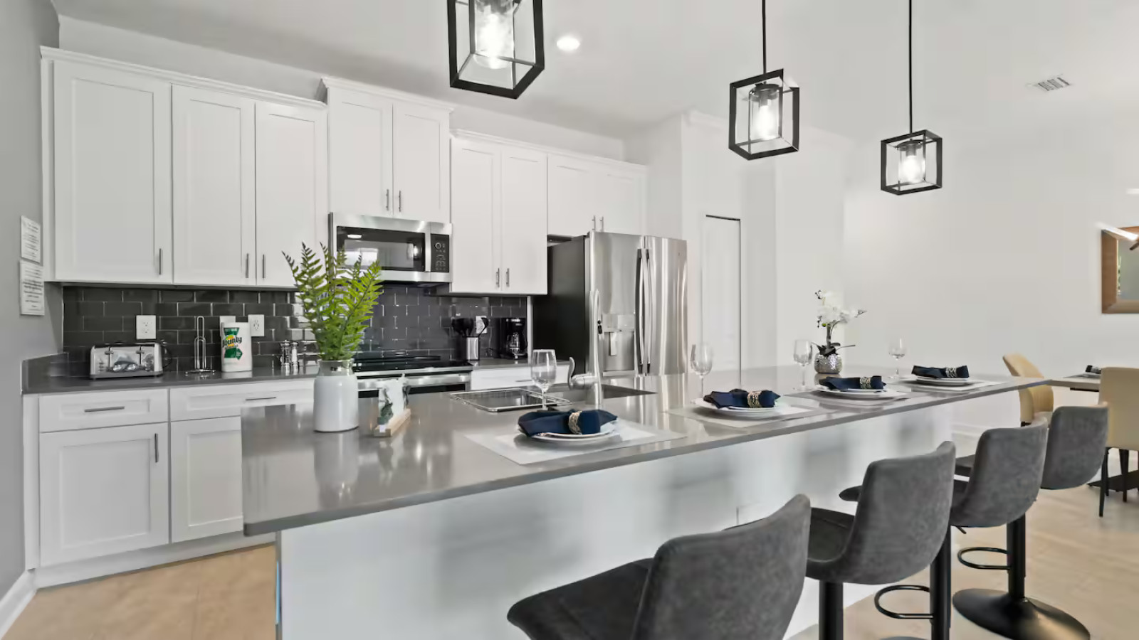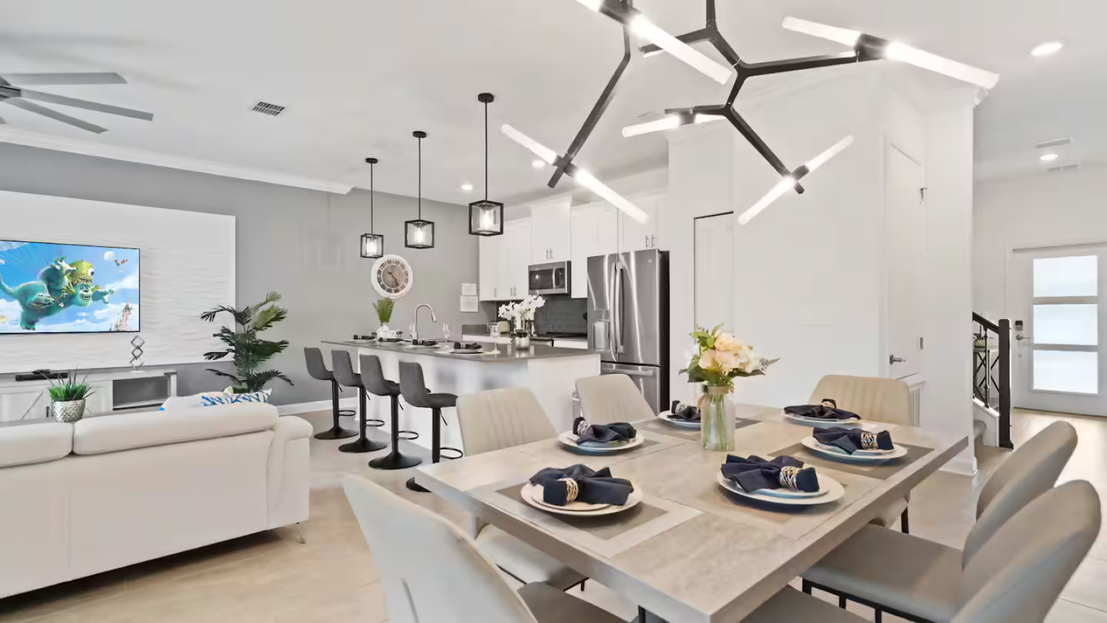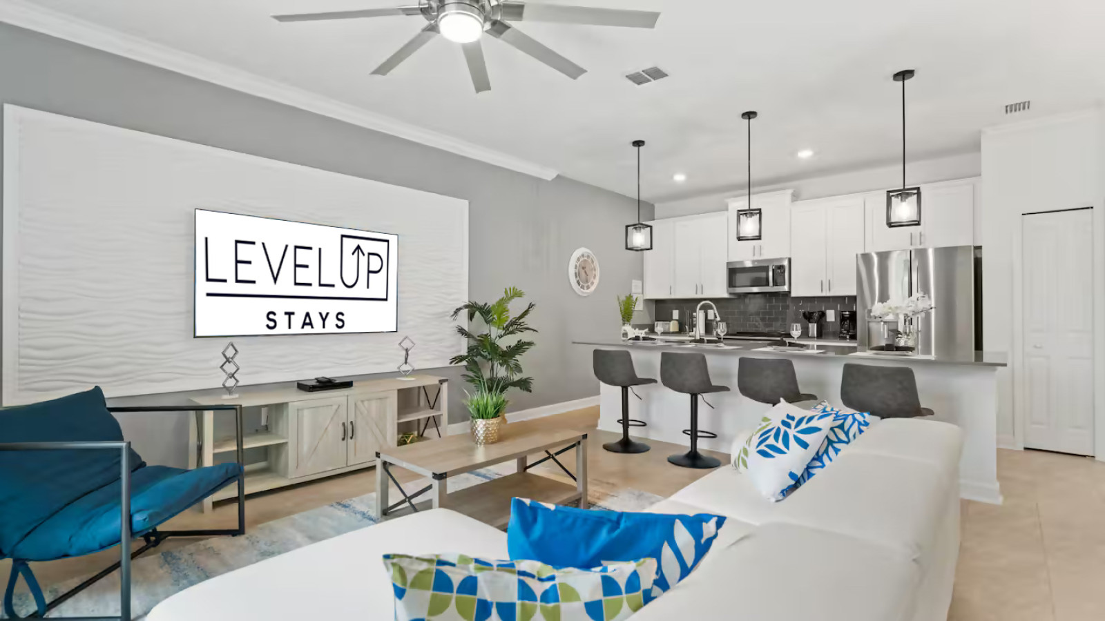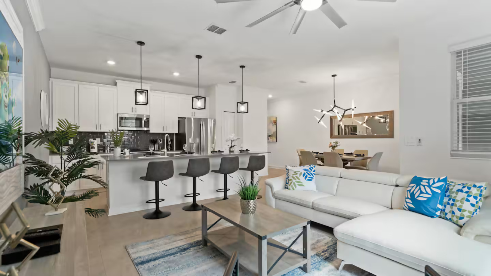 You’re only 6 minutes from Disney, but at Midnight Oasis you get more than just location — you get space, privacy, and the comfort of a true vacation home. This 4-bedroom, 3-bath Storey Lake townhome sleeps up to 10 guests and gives your group room to spread out, relax, and recharge. After a full day at the parks, you’ll love coming back to your own private screened pool, covered lanai, and open-concept living space designed for gathering together.