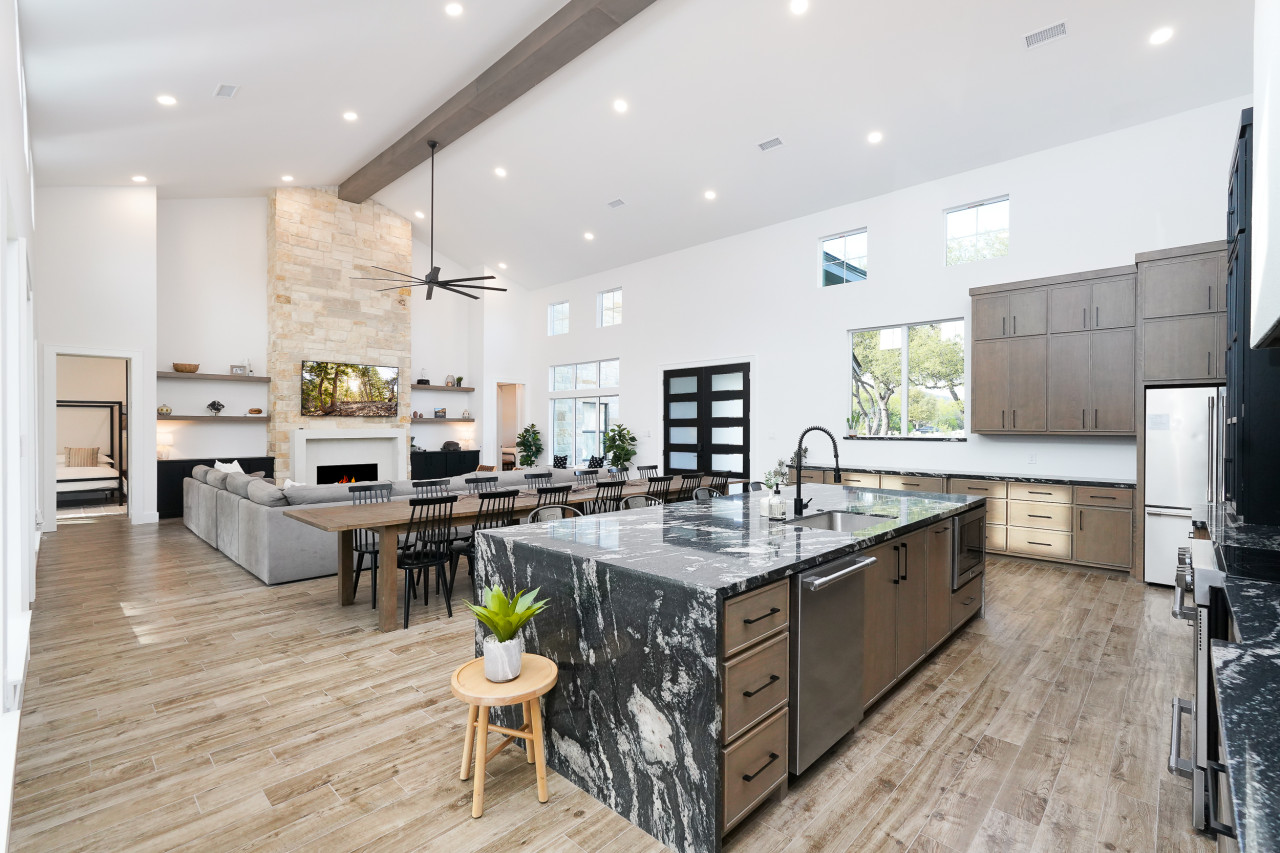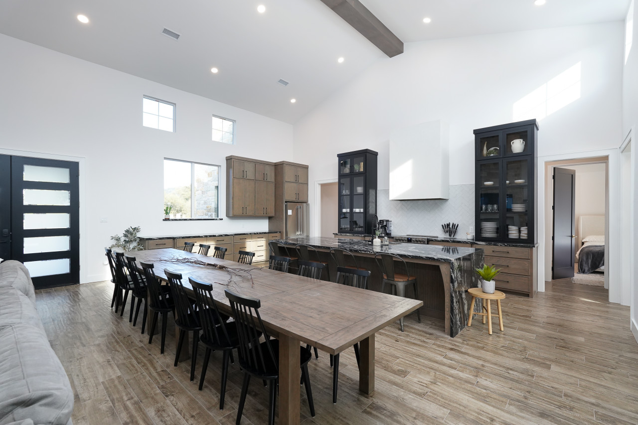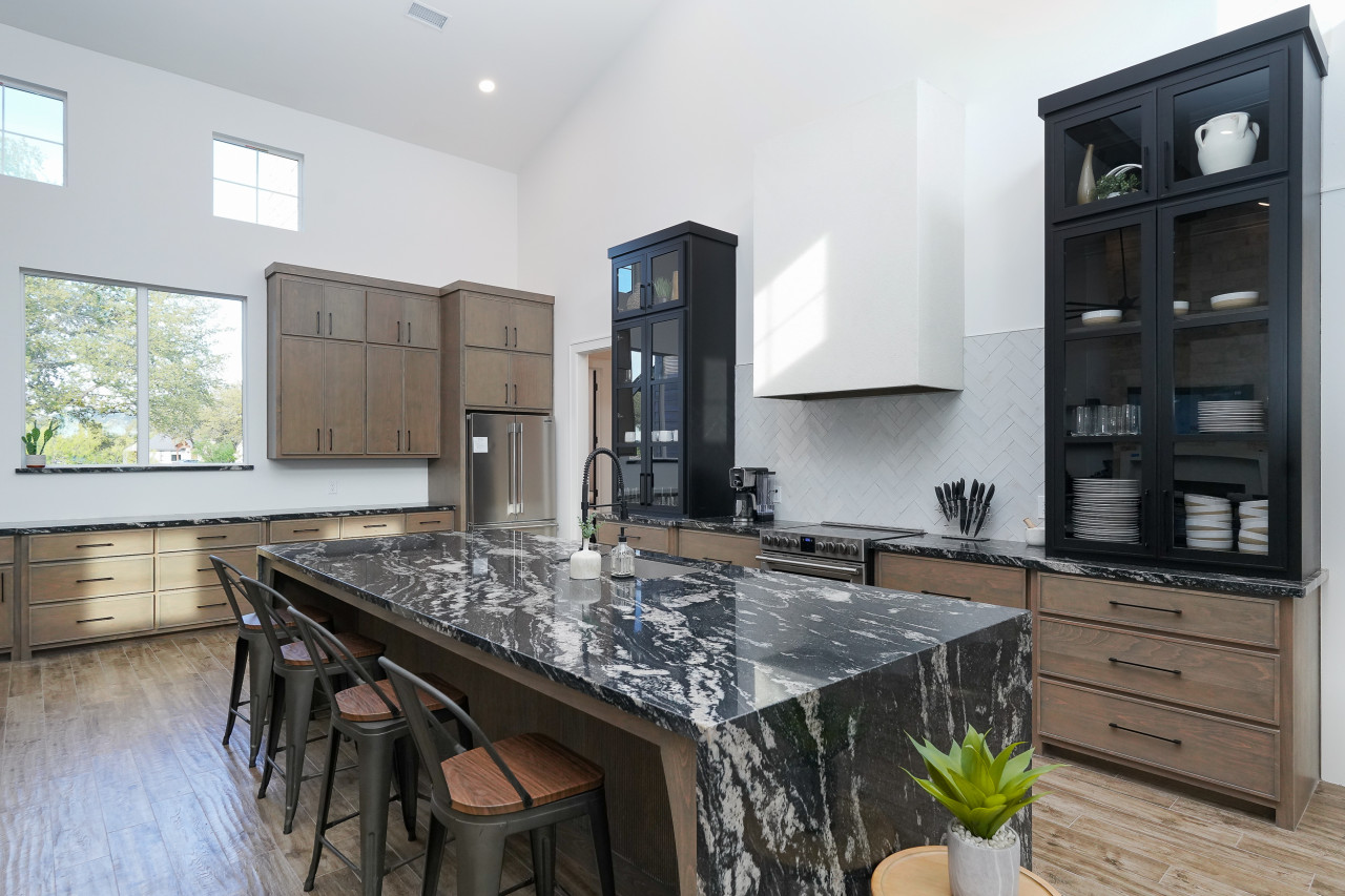 Step into luxury as you explore the two fully stocked kitchens – one indoors and one outdoors, perfect for preparing delicious meals and hosting gatherings. The outdoor kitchen is a true highlight, featuring a propane griddle, sink, refrigerator, freezer, fireplace, and smart TV, making it the ideal spot for al fresco dining and entertaining under the Texas sun. After a day of exploration, unwind in the pool or soak your cares away in the hot tub, surrounded by the tranquility of the countryside.