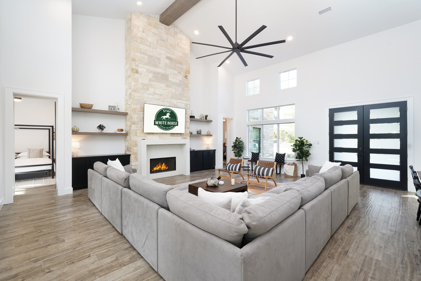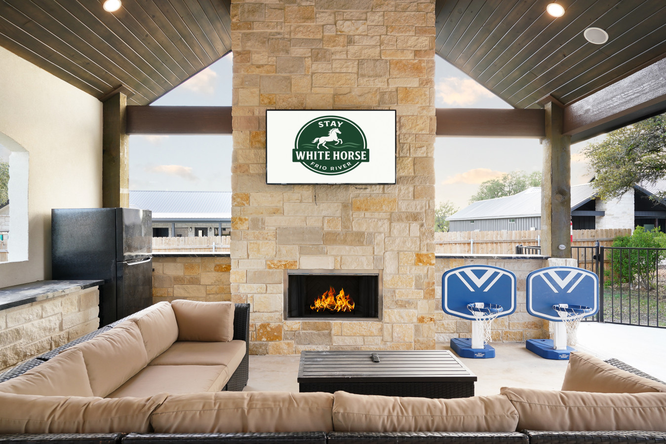 Discover White Horse located in the Concan Country Club, perfect for families visiting the Frio River. Sleeps 30 with 7 bedrooms, including a full pull-out bed that sleeps 2. Enjoy two fully stocked kitchens, indoor and outdoor. Outdoor kitchen boasts grill, sink, fridge, freezer, fireplace, and smart TV. Dive into the pool or relax in the hot tub. This home includes an exclusive membership to the Frio Valley Golf Club — up to 6 rounds per day of your stay!