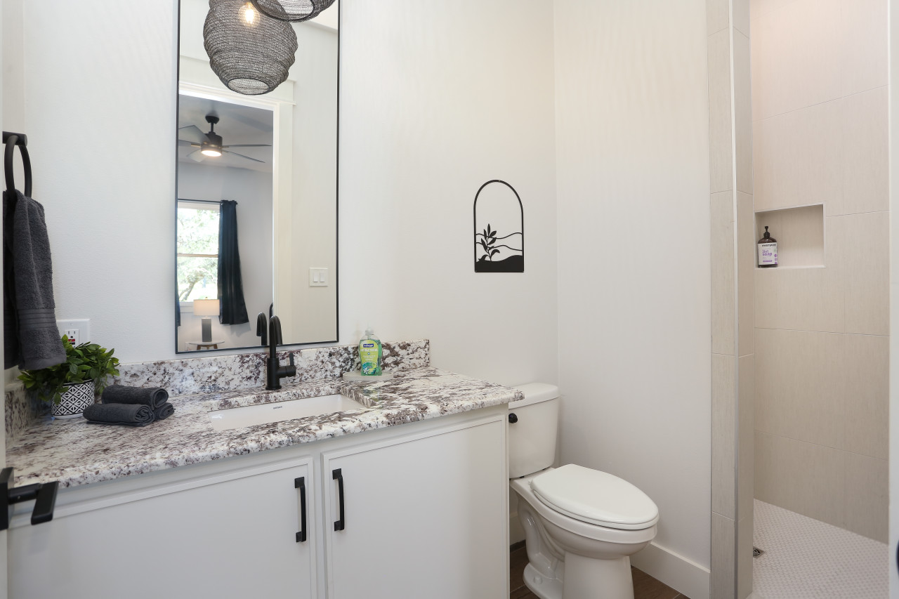 Outside, you’ll find a heated pool (optional), a hot tub, and plenty of loungers and cabanas to relax in. Play giant Connect 4 or cornhole, or sit around the cowboy fire pit in comfy Adirondack chairs. Our outdoor kitchen has both propane and charcoal grills, so you can cook up delicious meals and enjoy them outside. This home backs up to a wooded area so you have complete privacy!